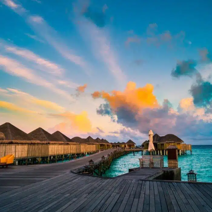 On the following days, dive into the crystal-clear waters of Dhiffushi Island, engaging in thrilling water sports like snorkeling, jet skiing, and kayaking. Experience the magic of Maafushi Island, where you’ll enjoy a dolphin-watching tour and a romantic sunset cruise over the vast Indian Ocean.